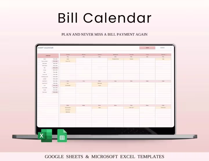 Never miss a bill payment again with this Bill Payment Calendar for Excel & Google Sheets. Features dynamic monthly calendar, track up to 50 bills per day, paid & unpaid tracking, auto-calculations, customizable colors & multi-currency support. Perfect for personal & small business use.