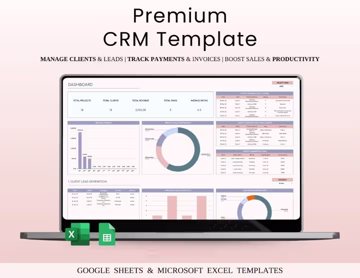 Introducing the CRM Spreadsheet Template for Excel & Google Sheets — a powerful, ready-to-use Customer Relationship Management system that helps business owners, sales managers, freelancers, and marketers organize client interactions, track communications, and optimize their entire sales process — all without expensive CRM software or complex setups.