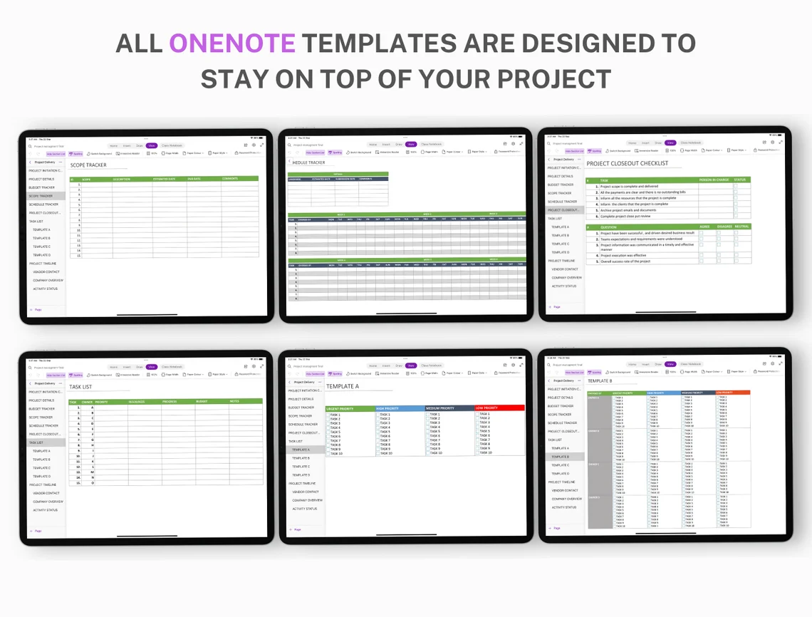 Manage projects efficiently using OneNote. Plan tasks, track progress, and stay organized with this simple project management system.
